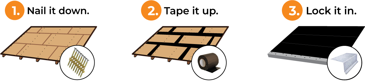 Instead of common smooth nails, FORTIFIED requires ring-shank nails, installed in an enhanced pattern, to help keep the roof deck attached to your home in high winds. In fact, using ring-shank nails nearly doubles the strength of your roof against the forces of winds.